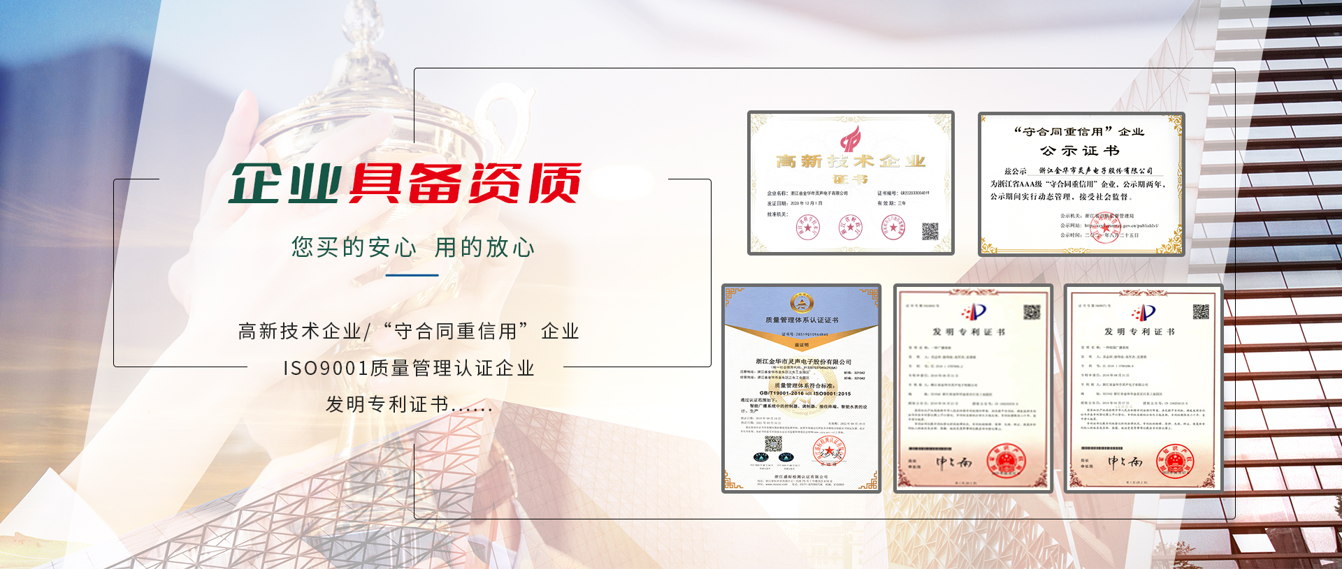公司榮譽(yù):先后被認(rèn)定為國家高新技術(shù)企業(yè),浙江省高新技術(shù)企業(yè),浙江省工商業(yè)守合同重信用單位,浙江省科技型中小企業(yè),金華市專利示范企業(yè),金華市誠信民營企業(yè)等榮譽(yù)。